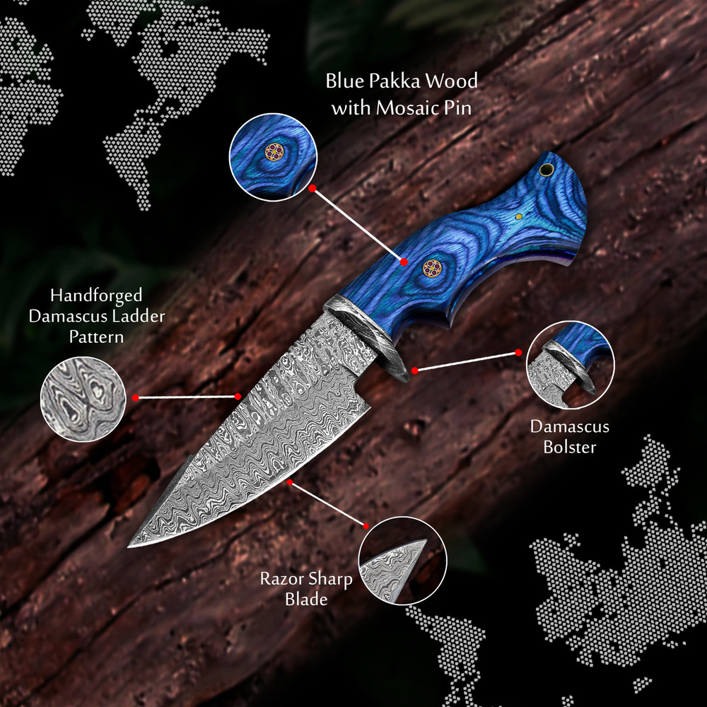 10" Handmade Damascus Steel Knife with Leather Sheath | 300-Layer Ladder Pattern
