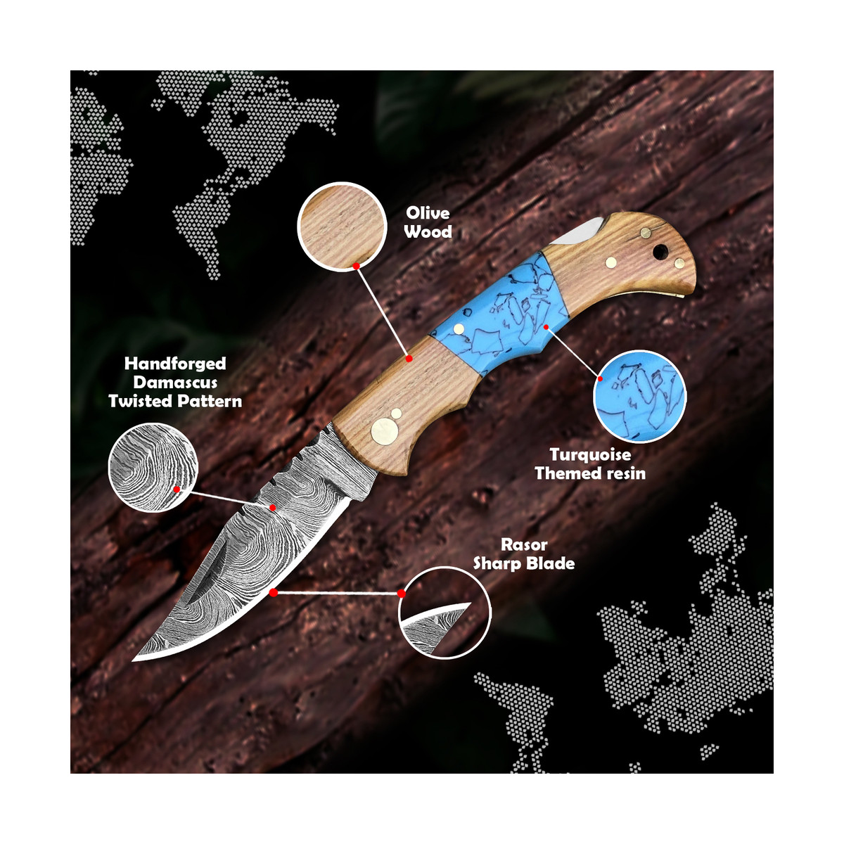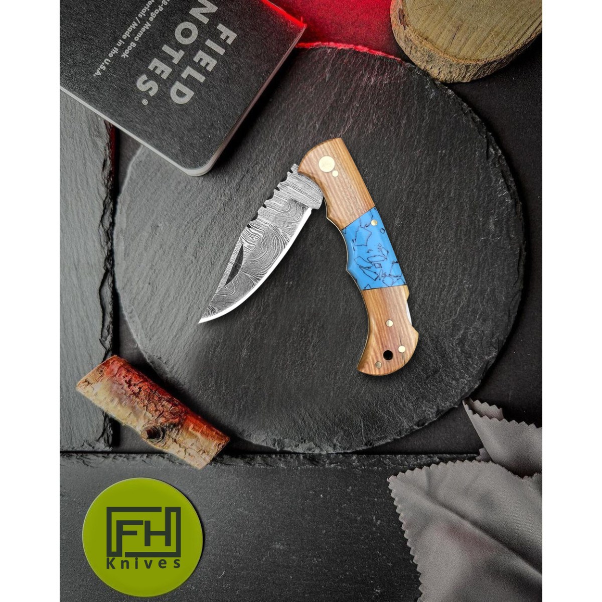 6.5" Handmade Damascus Folding Knife + Leather Sheath | 300-Layer Steel