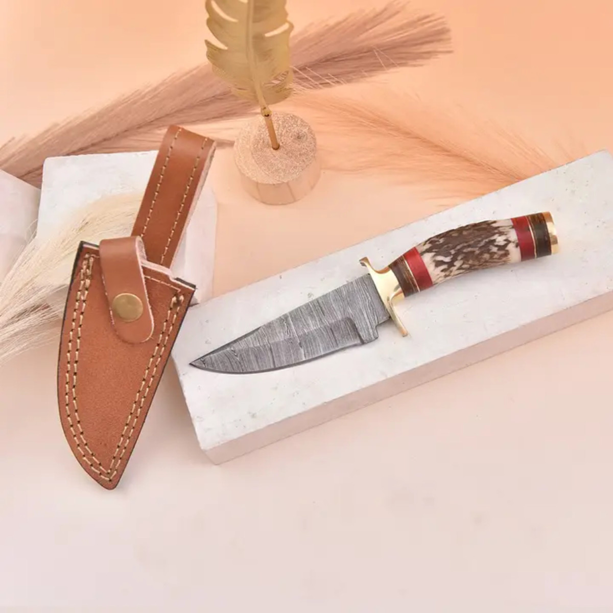 🔪 True craftsmanship — Damascus steel and natural horn combined.