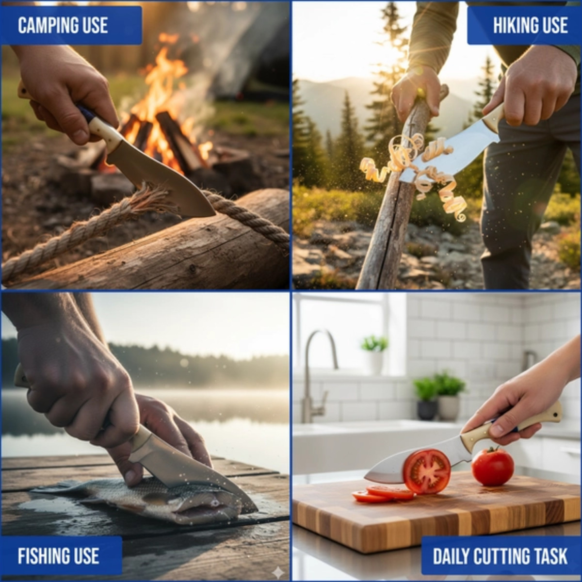 🧵 Hand-stitched genuine leather sheath ensures safe storage and easy carry during camping, hunting or outdoor activities.