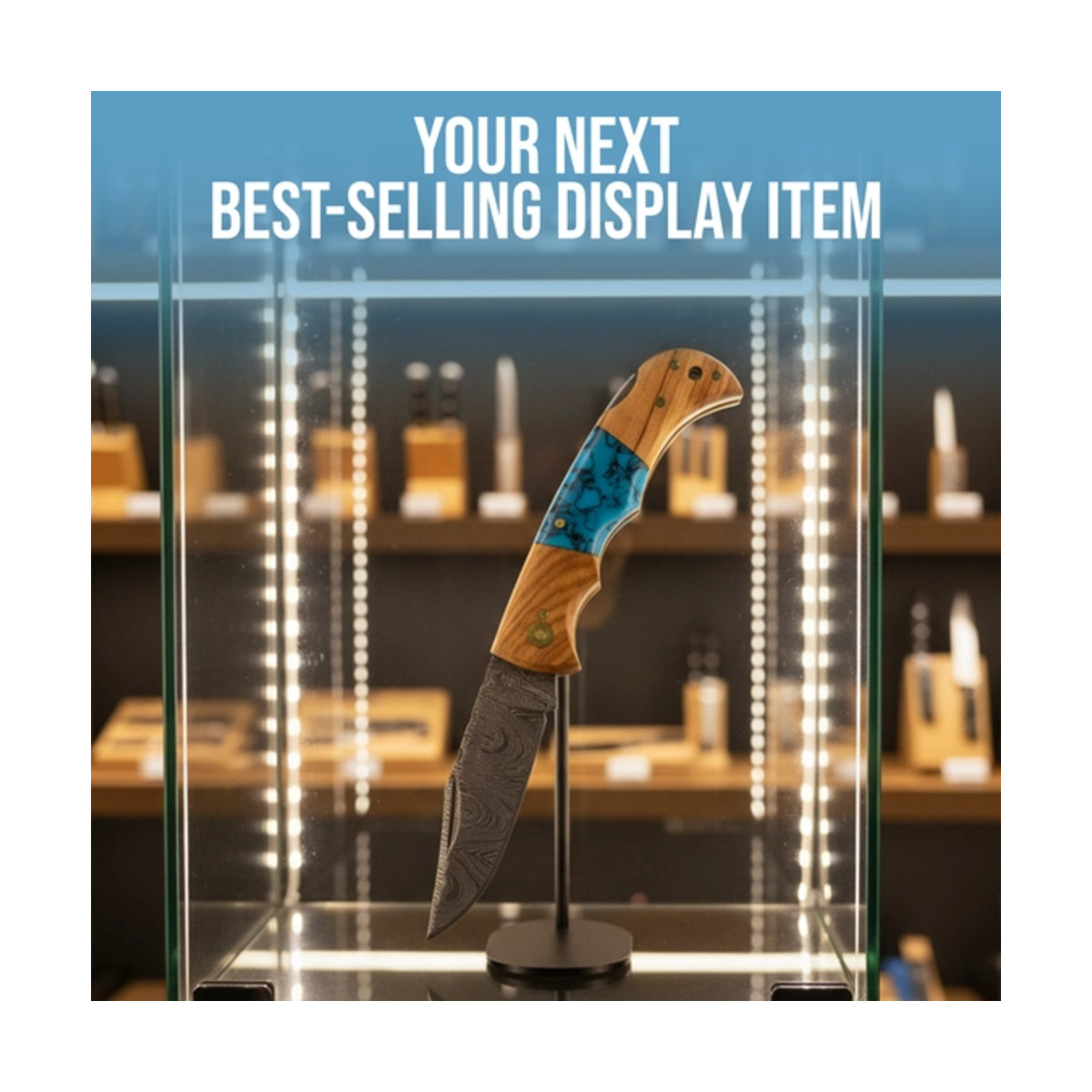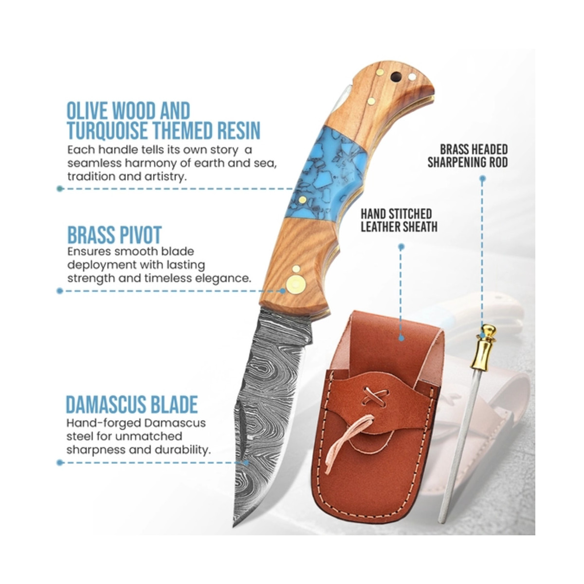 6.5" käsitöö Damaskuse kokkupandav nuga + nahast tupp | 300 kihti