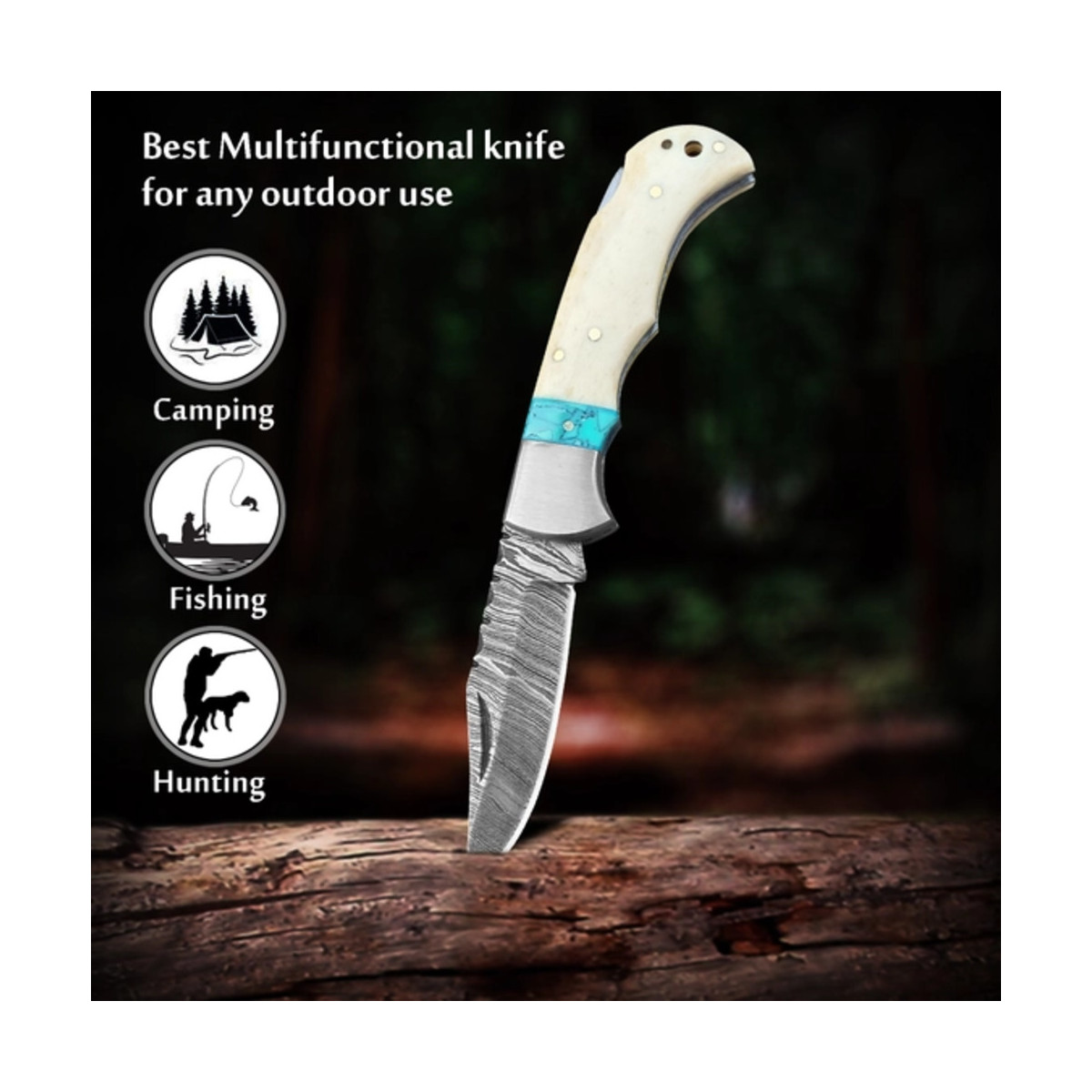 Складной нож 6.5" Handmade Damascus Folding Knife + кожаные ножны