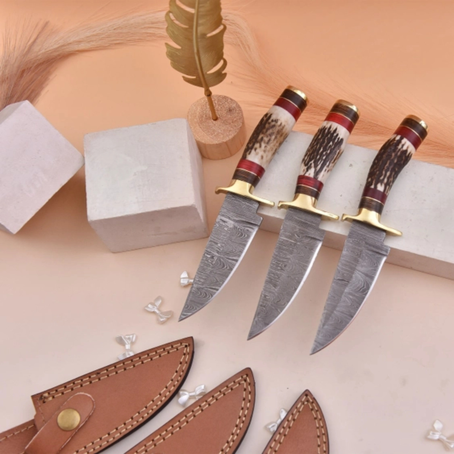 🔪 Ручная ковка, дамасская сталь и рукоять из рога — сочетание настоящего мастерства.