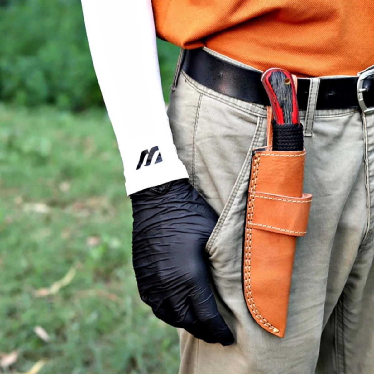 🧵 Ножны из натуральной кожи, прошитые вручную, обеспечивают безопасное и удобное ношение на ремне.