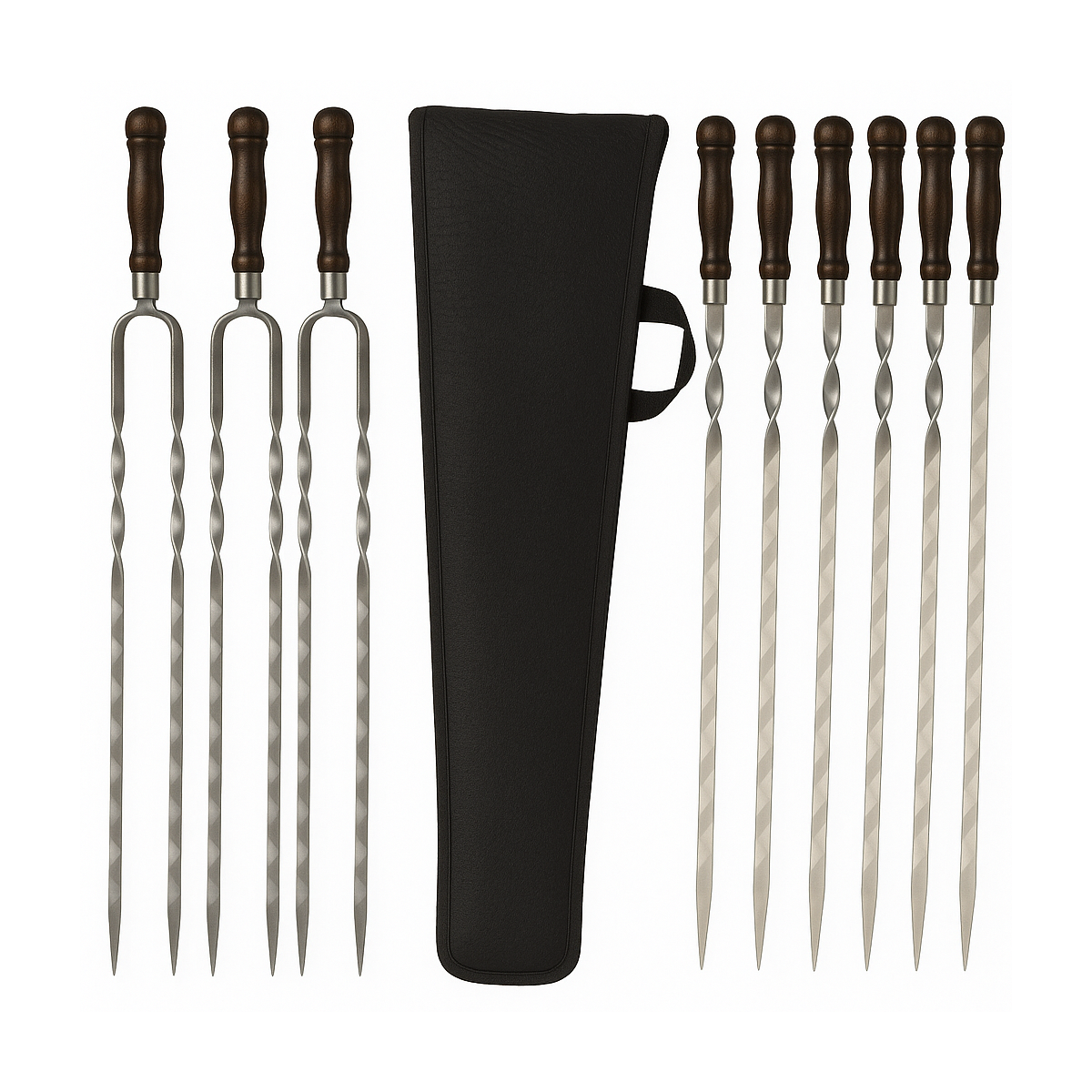 Наша продукция - шампуры в футляре предлагает удобство, защиту и организацию для вашего гриля или барбекю.
